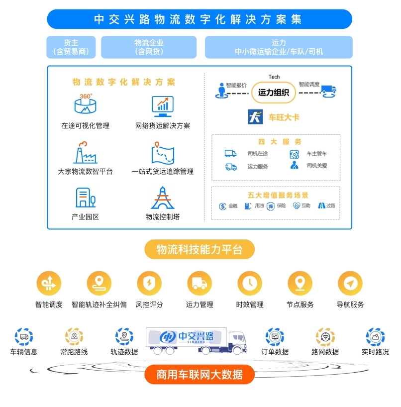 货运物流承载生产生活类经济社会基本物资的运输。其中,公路货运承担着全社会70%以上的货运量,被称为支撑经济发展的“大动脉”。12吨以上的重载货车,包括牵引车、半挂车、自卸车、特种车等是公路货运的最小单元。米兰app官方端网站入口的物流数字化就是从这个最小单元开始,先将近千万的货车数字化,让它成为流动的数字体。