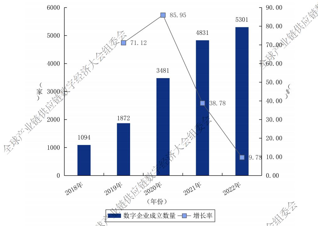 2018—2022年度全国数字物流企业成立数及增长率